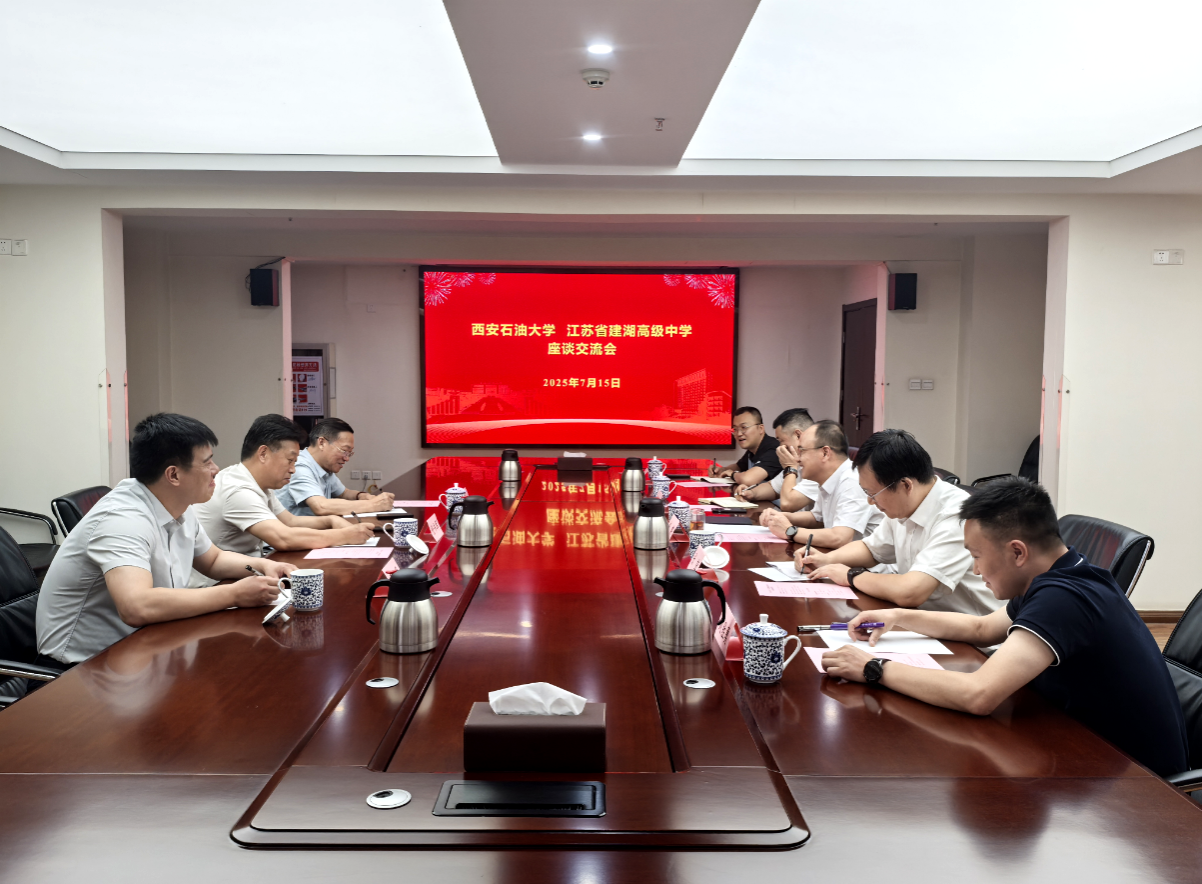 赵健代表学校对张书军一行来访表示热烈欢迎,并从学校办学特色、学科建设、人才培养、师资力量和科研成果、就业前景等方面进行了介绍。他表示,期待与建湖高级中学进一步深化合作,共同探索新时代教育发展新路径,在人才培养模式优化、教育资源共建共享等方面携手共进,为服务国家战略需求、推动教育事业高质量发展贡献更大的力量。