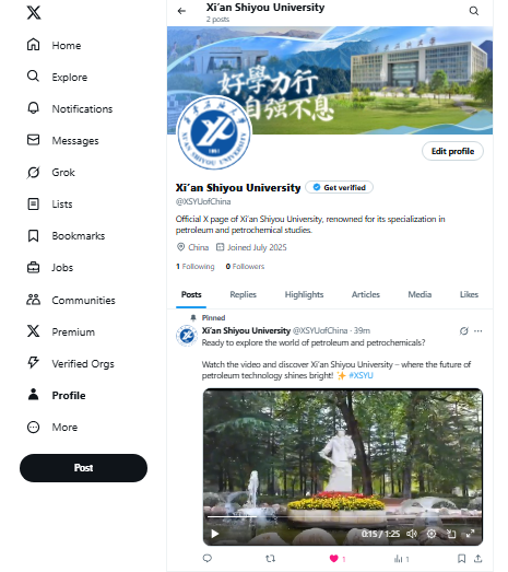 此次两大海外社交媒体账号的开通,是在现有官微、微博、抖音、哔哩哔哩及视频号等国内新媒体账号稳健运营基础上,补齐海外传播媒介的关键一环,标志着我校全媒体传播格局的全面构建完成。学校将以这两大海外社交媒体平台为重要依托,立足陕西、面向全球,积极探索具有“中国话语、石油特色”的海外传播路径,生动讲好西石大故事,有力传递中国好声音,持续扩大学校的海外知名度与影响力,稳步提升国际化办学水平。
