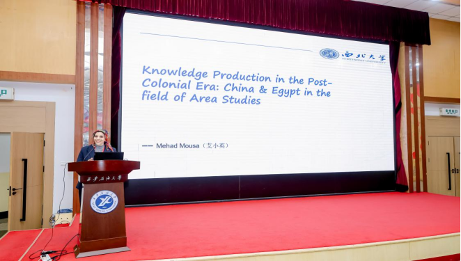 西北大学Mehad Mousa博士作题为《后殖民时代的知识生产:中国与埃及高校区域国别研究的互鉴与竞争》的主旨报告,她指出在后殖民时代,区域国别研究长期受西方学术霸权影响,但近年来,中国与埃及作为非西方文明古国,正尝试构建本土化的知识生产体系。