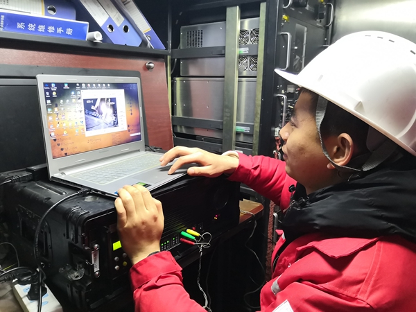 2019年5月,中海油33平台承钻的一口海上油井发生新井套漏,情况不明、责任不清,工程进度受阻。该平台是全球最大的座底式海上钻井平台,作业日费上百万元,钻一口井价值不菲,新井套破,事态严重。VideoLog团队严正娟、吕源使用了各种交通工具,以最短时间赶赴现场。 5月26日他们抵达平台,开始测井作业。该井管径较大,井液浑浊,井下缺少参照物,视线不良,给检测带来极大困难。通过清水循环洗井和7个多小时的耐心找寻,终于在井深1238m处找到套破裂缝,确认了事故原因,给后续处理措施提供了可靠依据。